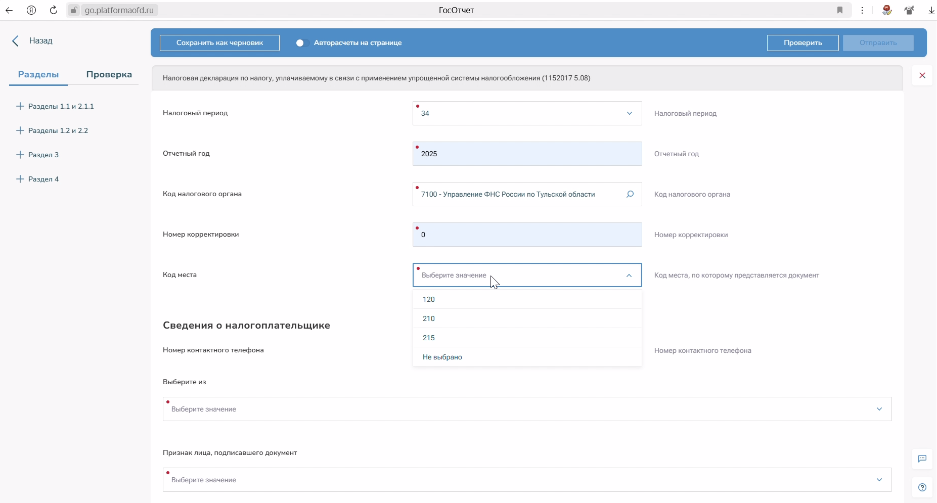 в «Платформе Госотчет» код налогового периода определяется автоматически