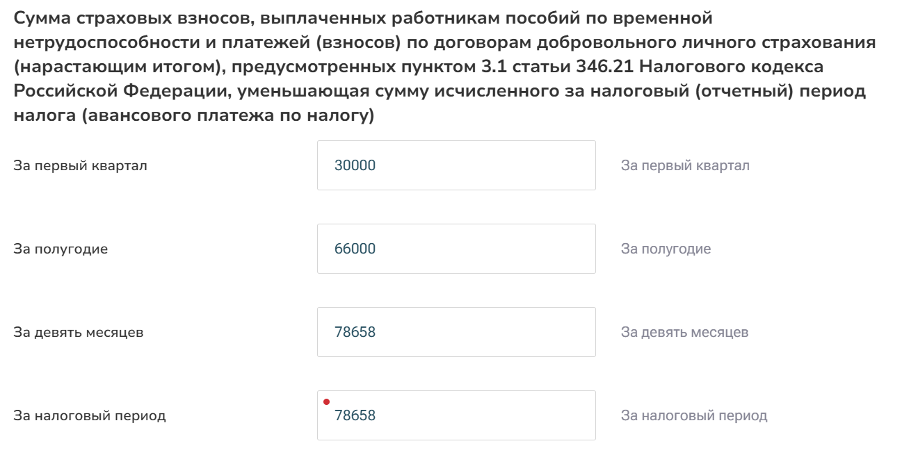 3. Сумма страховых взносов, уплаченных в налоговом периоде, отражаемая по строкам 140–143, не должна быть больше суммы исчисленного налога, указанной по строкам 130–133.
