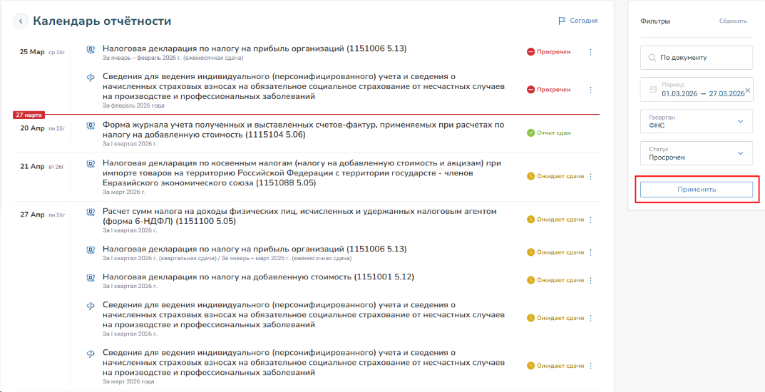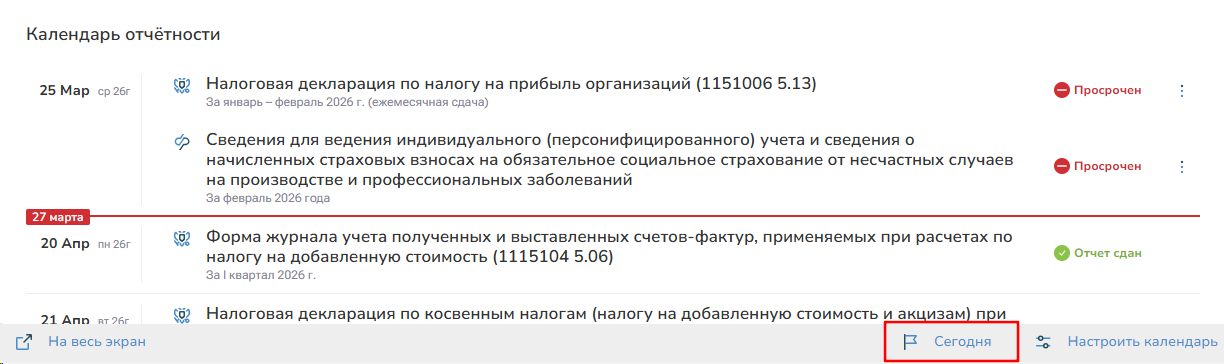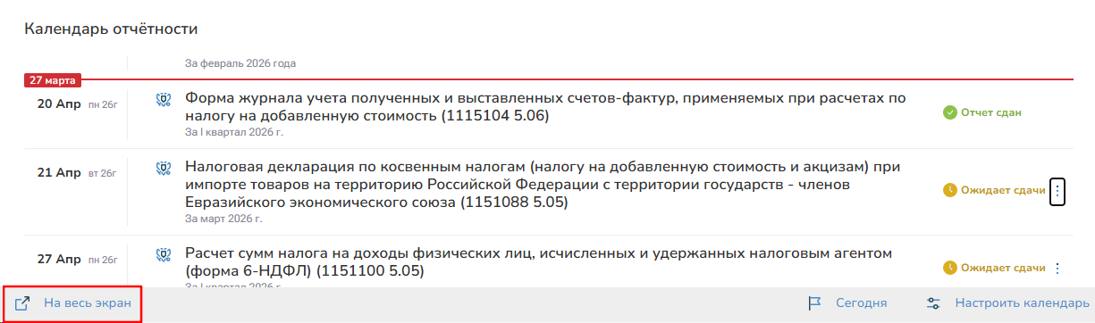 Откроется полный календарь бухгалтера