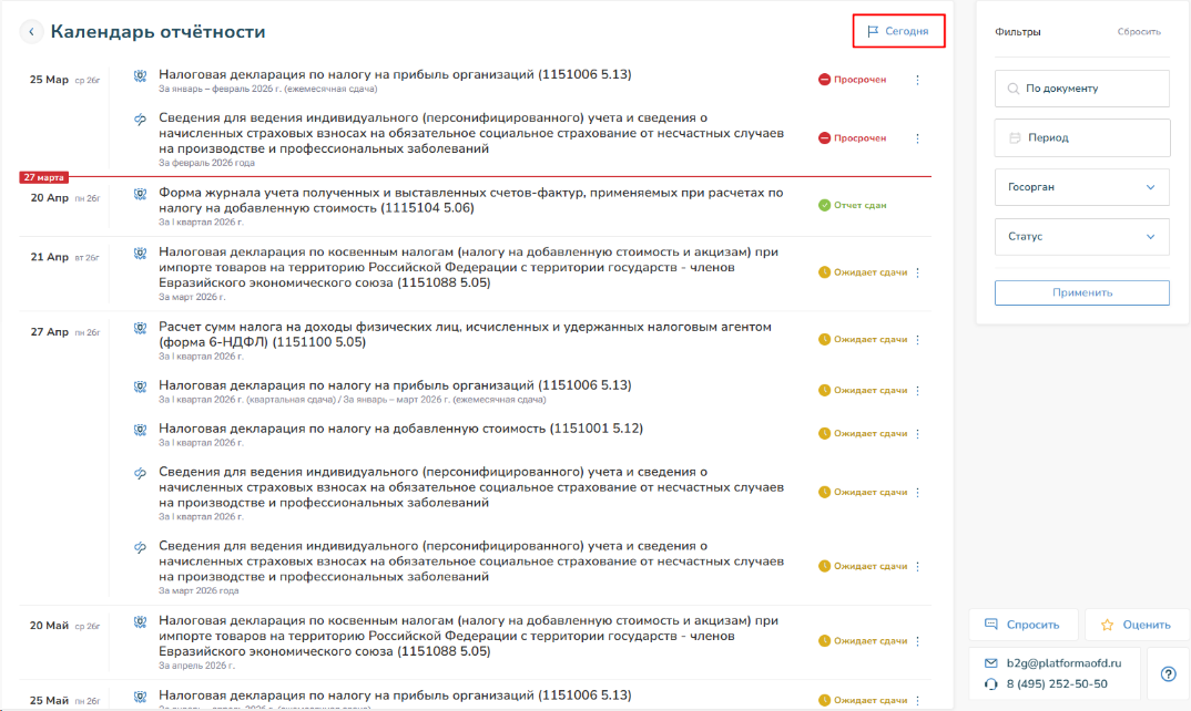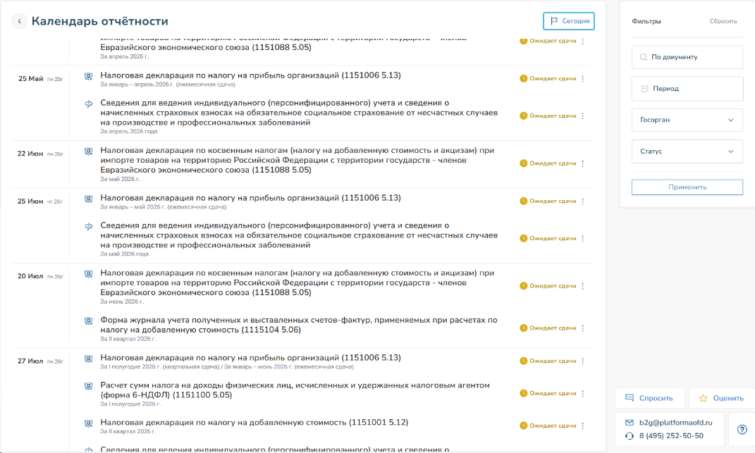 В случае, если нужная форма отчета не предусмотрена системой, обратитесь в поддержку: b2g@platformaofd.ru