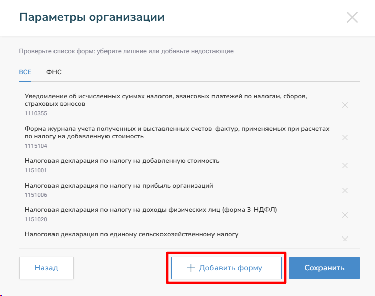 3. Сверьте список прикрепленных отчетов. При отсутствии необходимой формы воспользуйтесь кнопкой «Добавить форму».