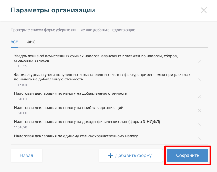 5. После добавленных всех форм нажмите «Сохранить»