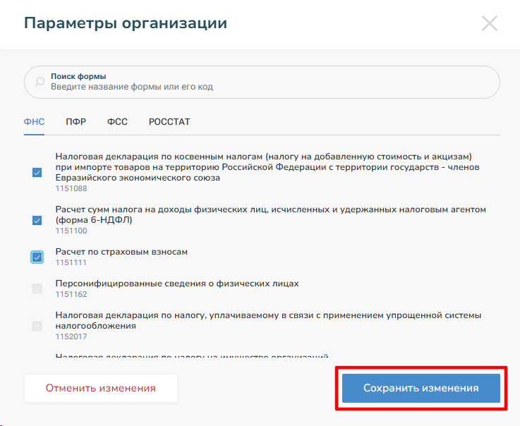3. Выберете из списка отчеты и нажмите «Сохранить изменения«.