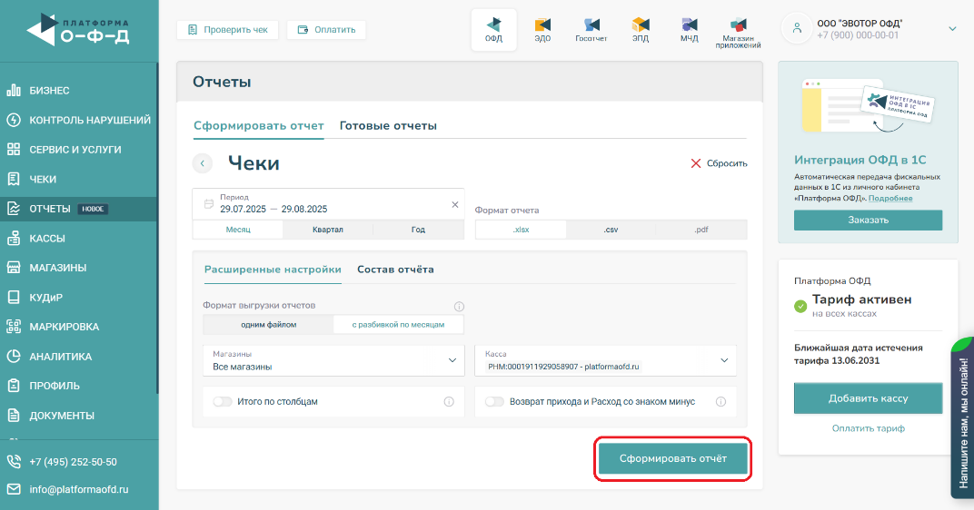 - После того, как выставлены все необходимые параметры необходимо нажать кнопку «Сформировать отчет»;