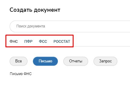 2. В окне Создать документ выберите Контролирующий орган (ФНС, ПФР, РОССТАТ)