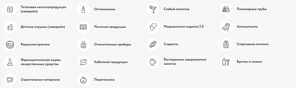На текущий момент проект охватывает товарные группы: