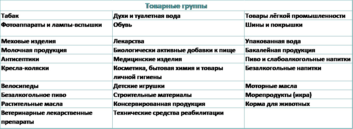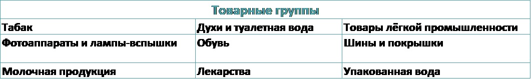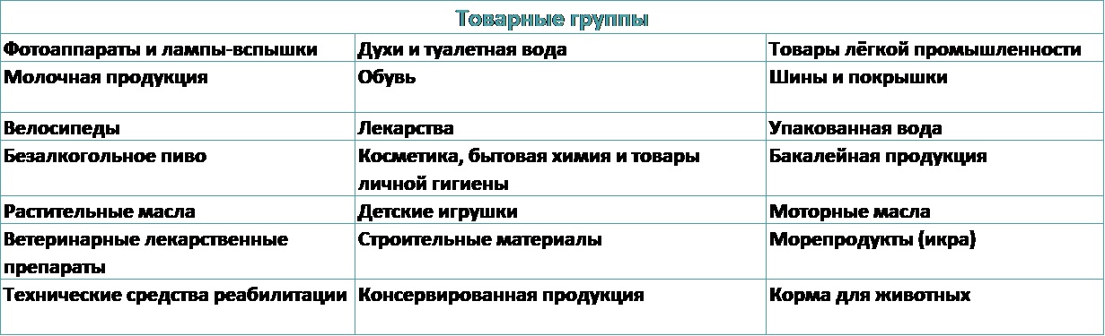 И товарные группы в отношении которых проходит эксперимент: