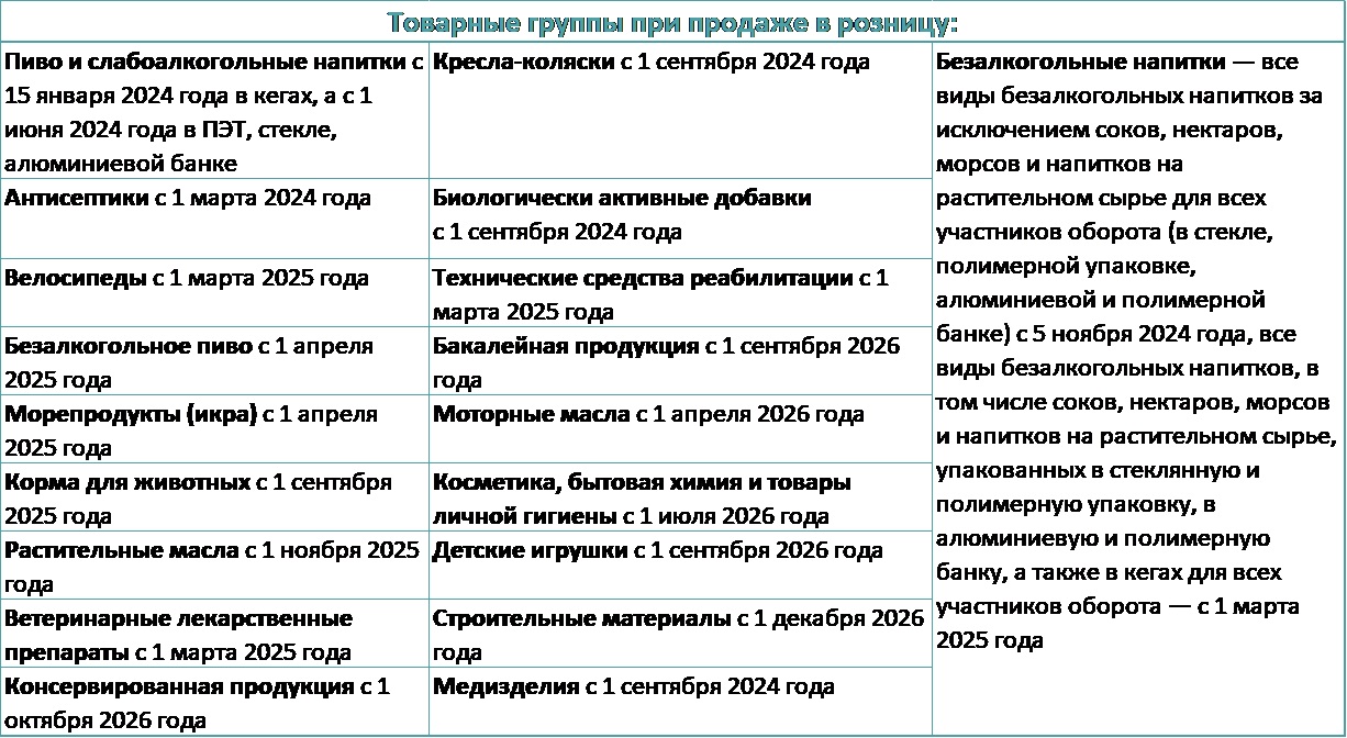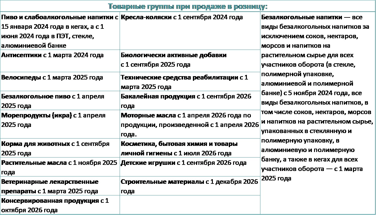 - С 1 октября 2023 г. – маркировка продукции, упакованных в полимерную и стеклянную упаковку.